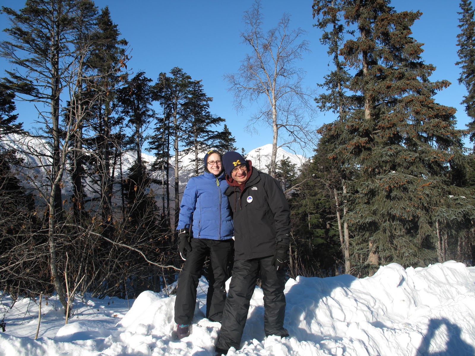Anyway, 2 weeks ago we joined Steve's co-clerk Aesha and her boyfriend Dario for a skiing weekend out in a cabin in Hope, Alaska. Hope is an approx. 2 hour drive south of Anchorage (it's on the Kenai), though most of that drive time is because it is on the other side of an inlet . . . and there is no bridge crossing the water.